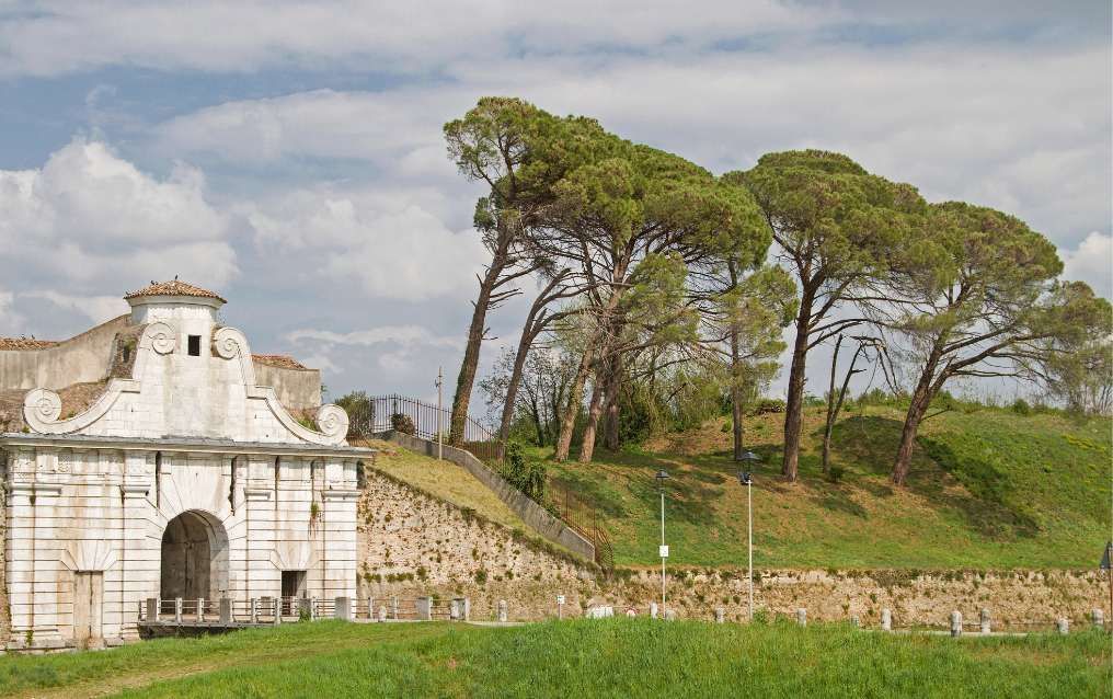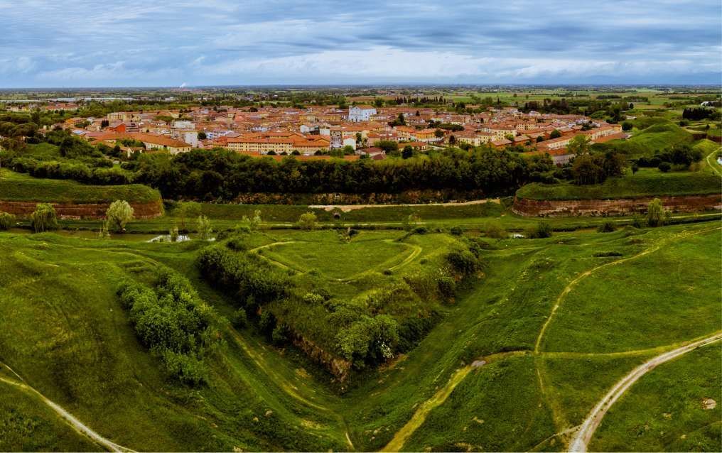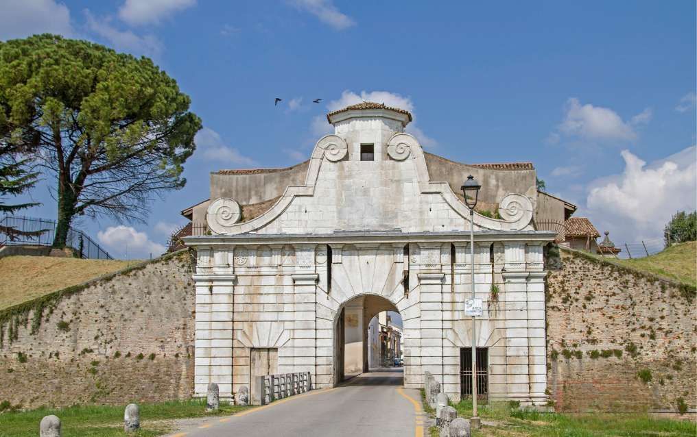 Palmanova, definita la "città stellata" e Patrimonio UNESCO dal 2017, è una spettacolare fortezza rinascimentale a nove punte costruita dalla Repubblica di Venezia nel 1593 .